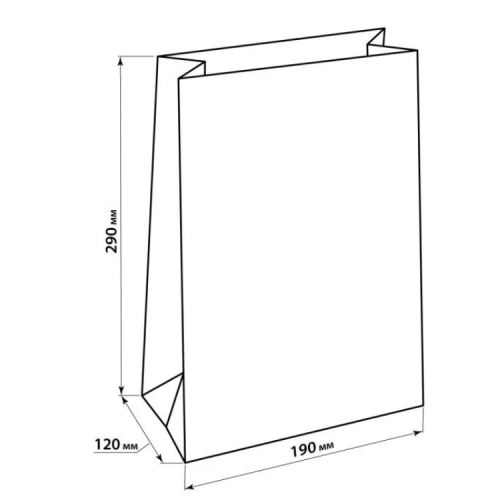 Бумажный крафт пакет Саше 19х12х29 белый без ручек
